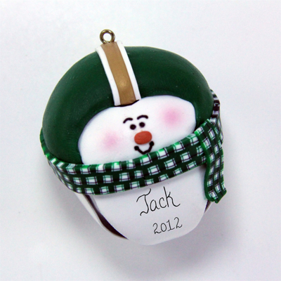 This little bell is made into a football player. Any football fan would love to received this personalized football player on bell for Christmas