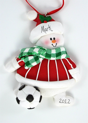 The soccer player in your life would love to see this personalized snowman soccer Christmas ornament on the tree!